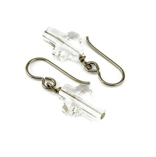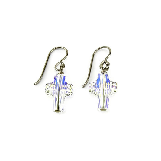 Titanium Earrings with Aurora Borealis Cross Crystals