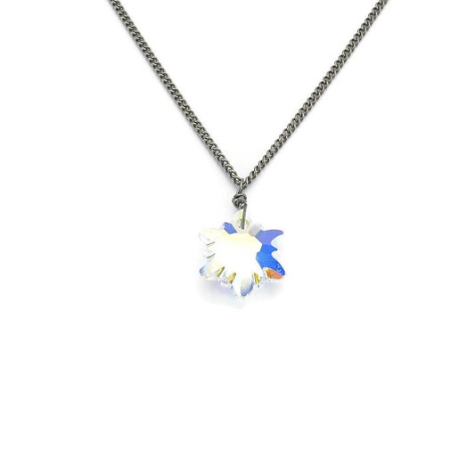 Titanium Necklace with Aurora Borealis Crystal Edelweiss Pendant
