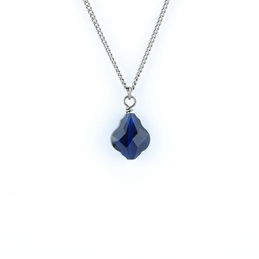 Titanium Necklace with Dark Indigo Crystal Baroque Bead Pendant
