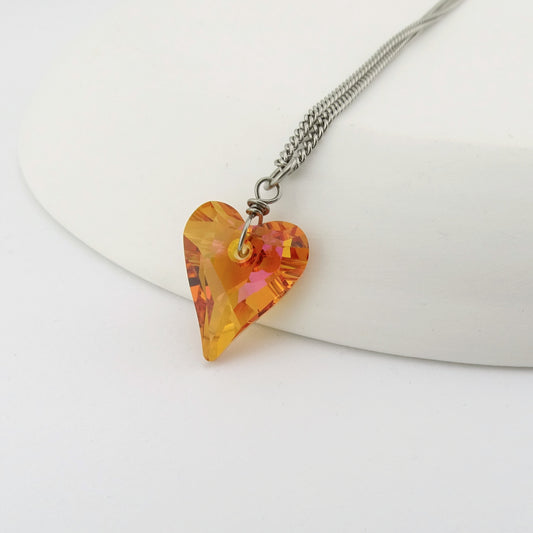 Titanium Necklace with Aurora Borealis Crystal Heart Pendant