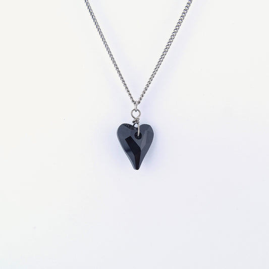 Titanium Necklace with Black Crystal Heart Pendant