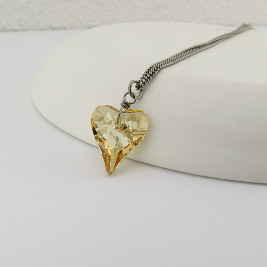 Titanium Necklace with Golden Shadow Crystal Heart Pendant
