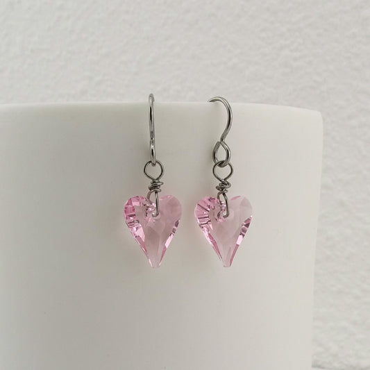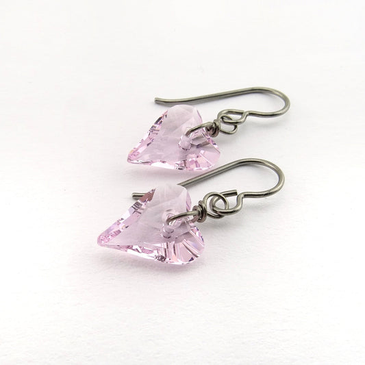Titanium Earrings with Pink Heart Crystals