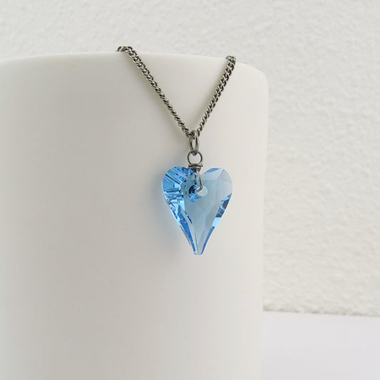 Titanium Necklace with Aquamarine Crystal Heart Pendant