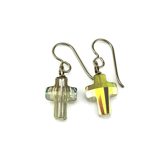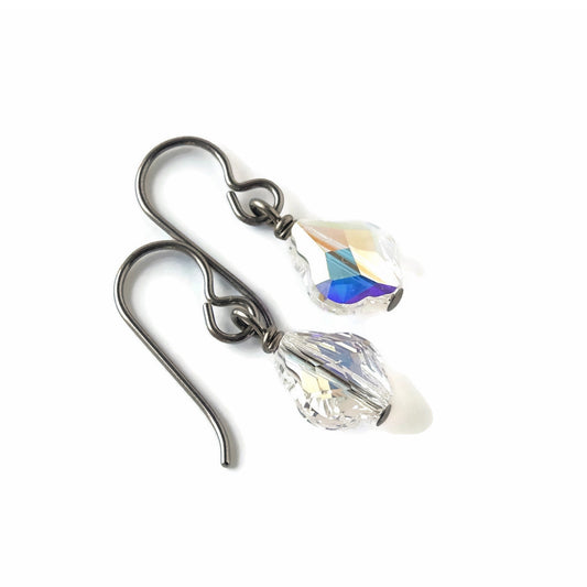 Titanium Earrings with Aurora Borealis Baroque Crystals