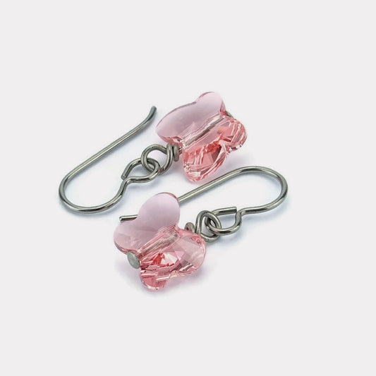 Rose Peach Crystal Butterfly Earrings for Sensitive Ears