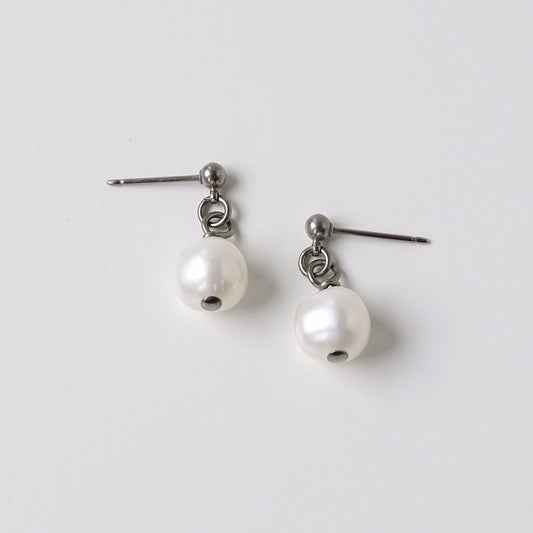 Titanium Post Earrings with White Pearl Dangle