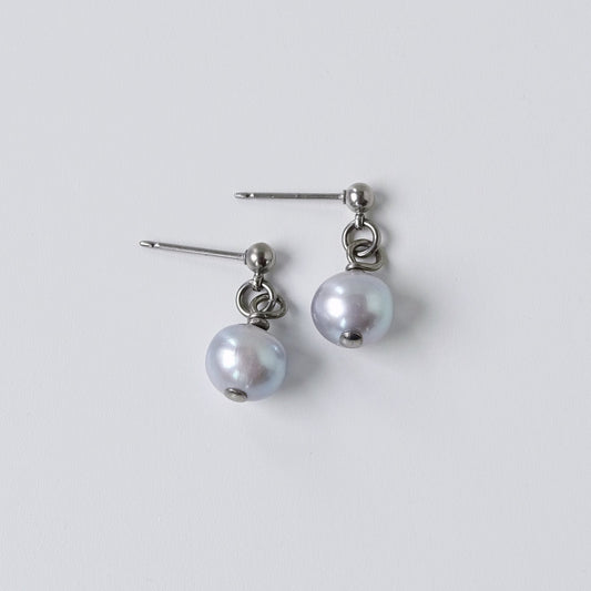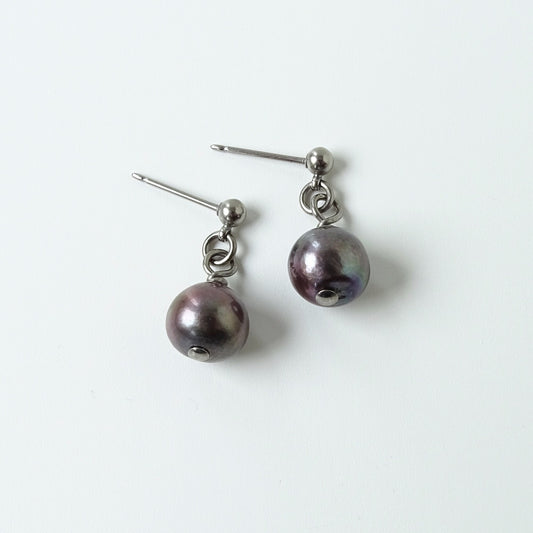 Titanium Post Earrings with Gray Pearl Dangle