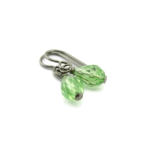 Titanium Earrings with Peridot Drop Crystals