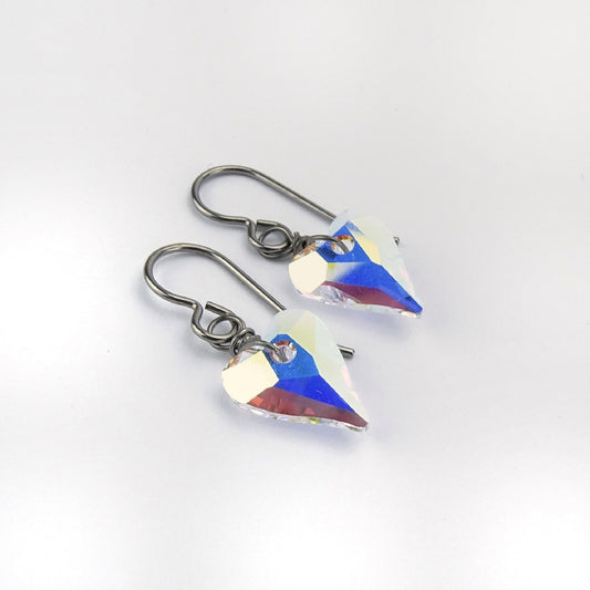 Titanium Earrings with Aurora Borealis Heart Crystals