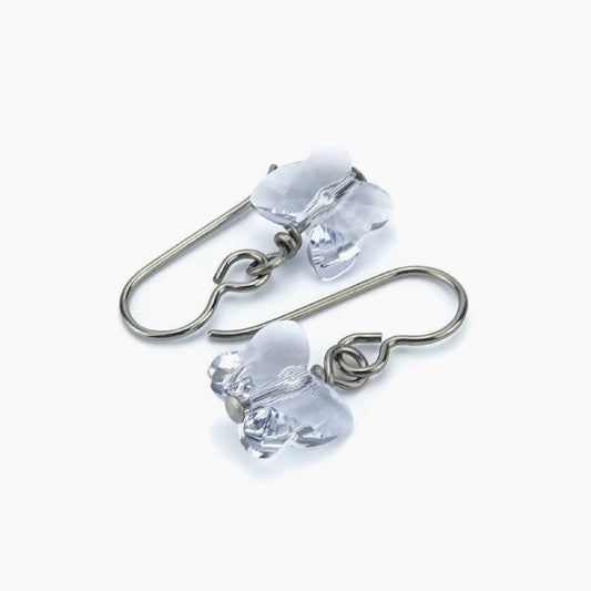 Smoky Mauve Crystal Butterfly Earrings for Sensitive Ears