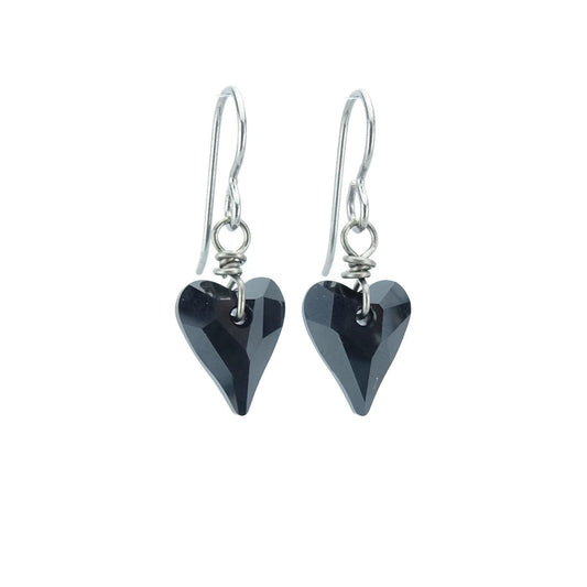 Titanium Earrings with Black Heart Crystals
