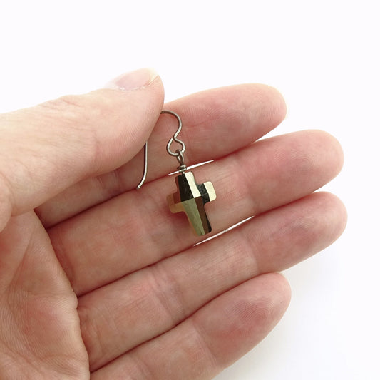Titanium Earrings with Metallic Gold Cross Crystals