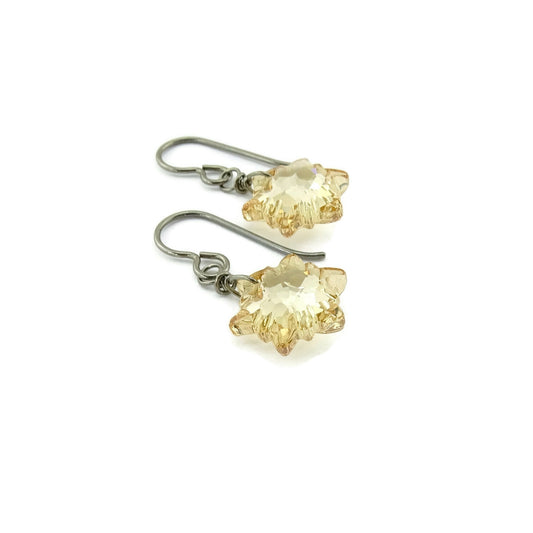 Titanium Earrings with Golden Shadow Edelweiss Crystals