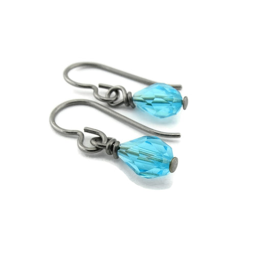 Titanium Earrings with Light Turquoise Drop Crystals