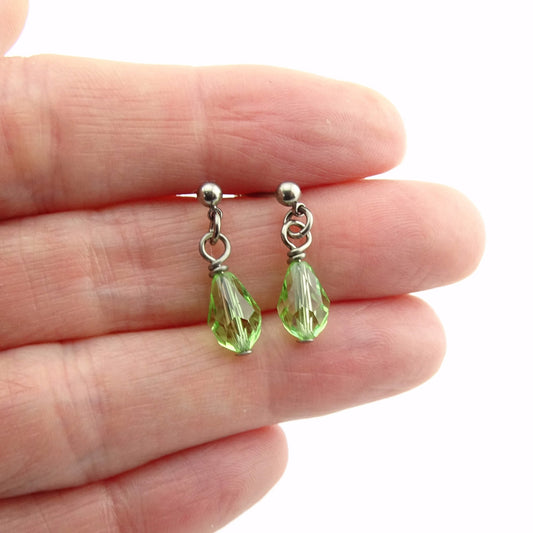 Titanium Post Earrings with Peridot Drop Crystals