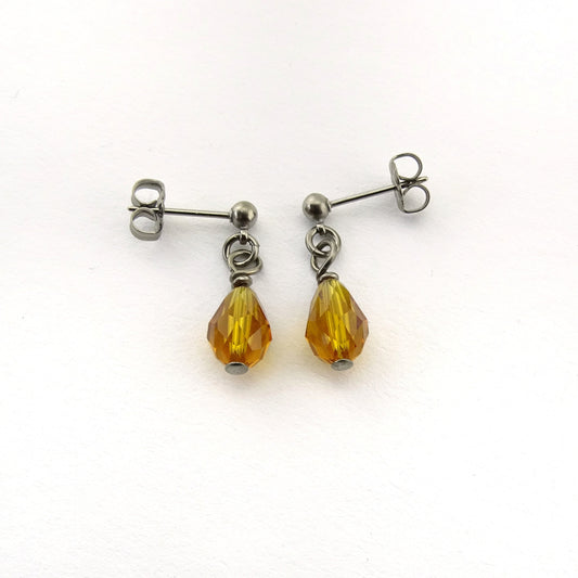 Titanium Post Earrings with Topaz Drop Crystals