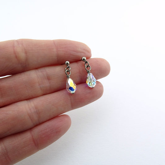 Titanium Post Earrings with Aurora Borealis Drop Crystals