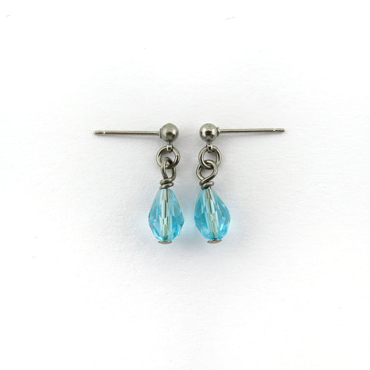 Titanium Post Earrings with Aquamarine Drop Crystals