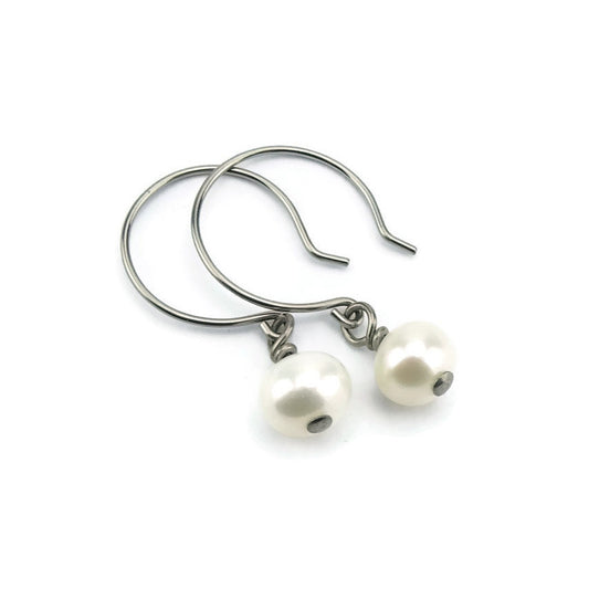 Titanium Earrings with White Pearls