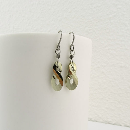 Pure Titanium Earrings with Metallic Gold Infinity Crystals