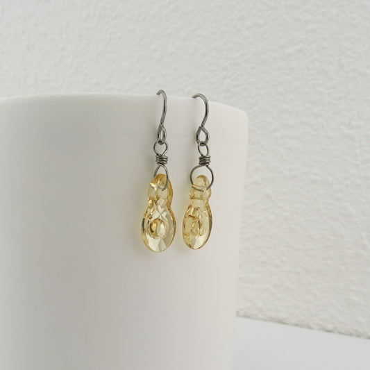 Titanium Earrings with Golden Shadow Baroque Crystals