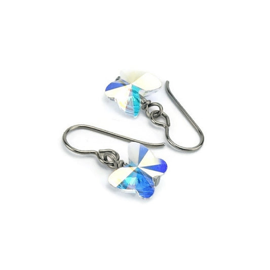 Aurora Borealis Crystal Butterfly Earrings for Sensitive Ears