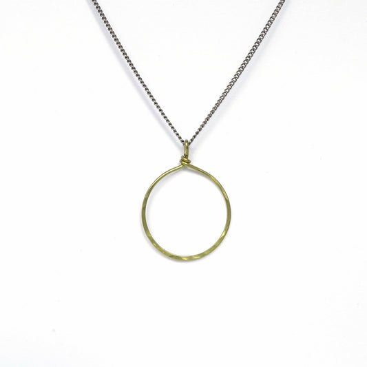 Titanium Necklace with Big Gold Circle Pendant