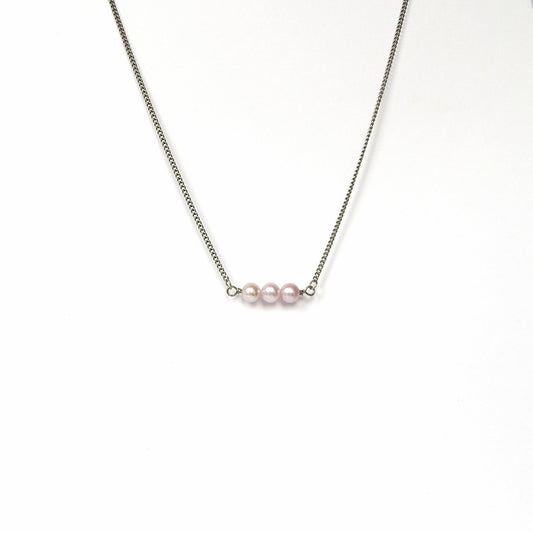 Titanium Necklace with Pink Pearls