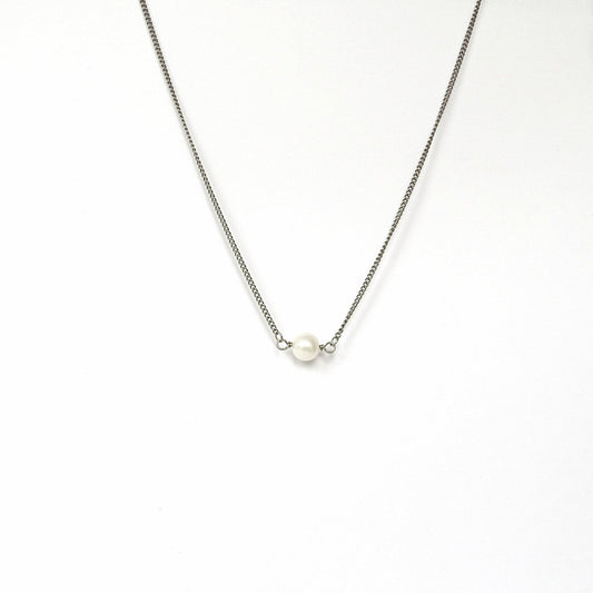 Titanium Necklace with Single White Pearl