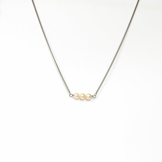 Titanium Necklace with Silver Night Crystal Baroque Bead Pendant