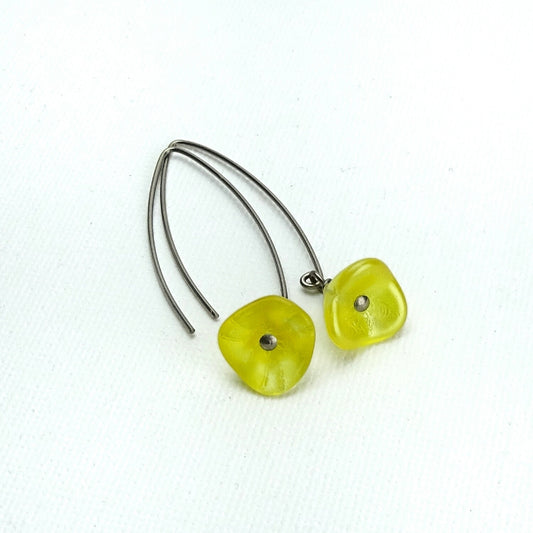 Niobium Earrings with Yellow Flowers on Arch Shaped Earwires