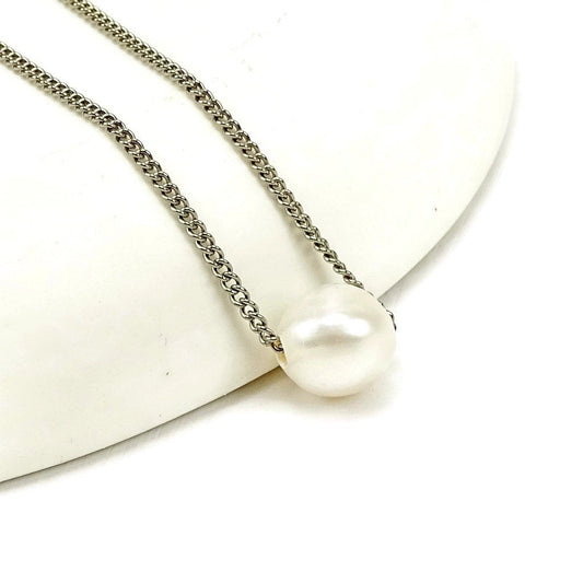 Titanium Necklace with Clear Crystal Baroque Bead Pendant