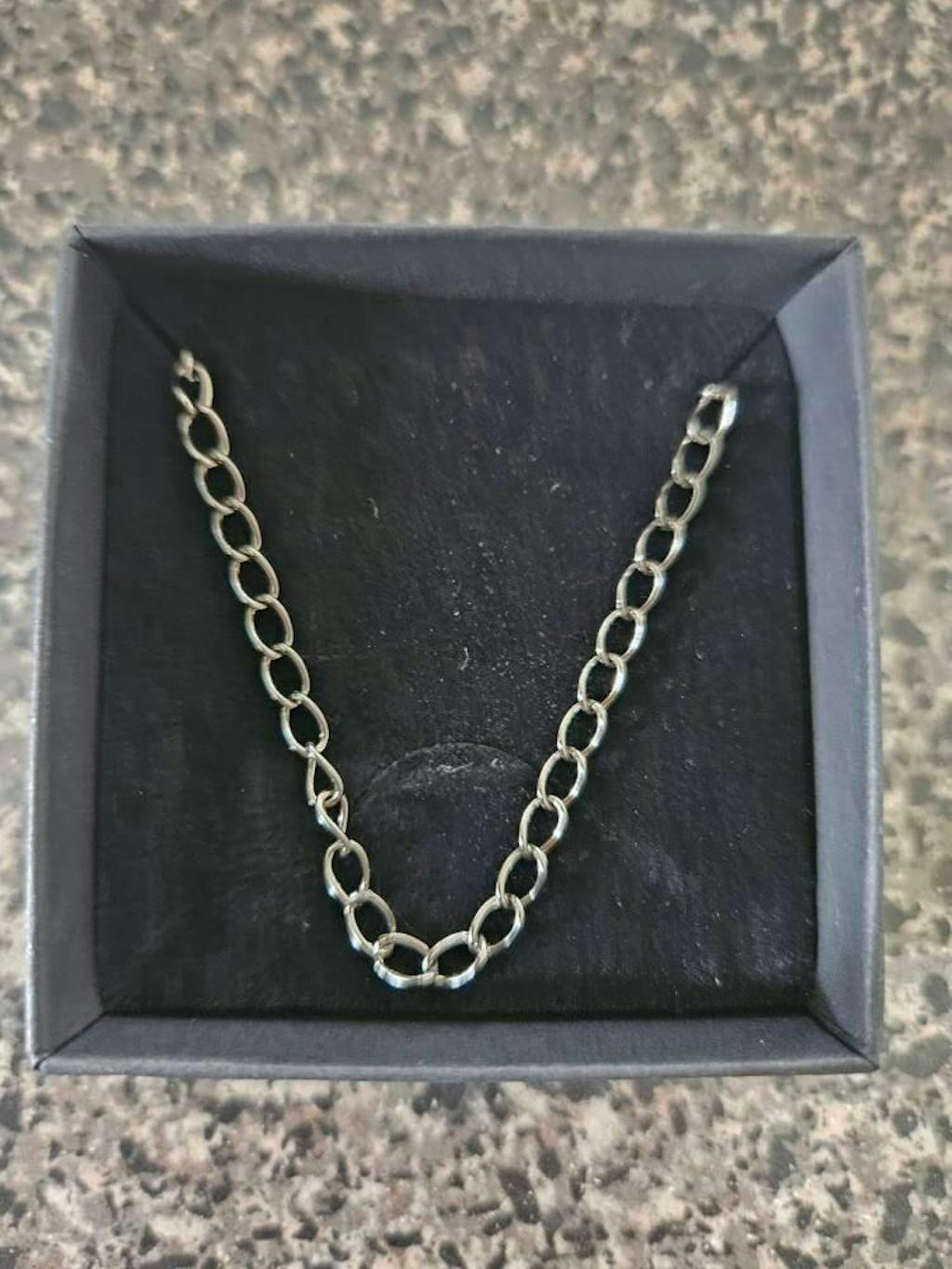 Elegant fine curb Titanium chain necklace. This stylish necklace has a delicate curb linked chain which gives the necklace a feminine look. The Necklace closes with a Titanium lobster Clasp. The clasp hooks into an oval Titanium link. All links and rings are welded.