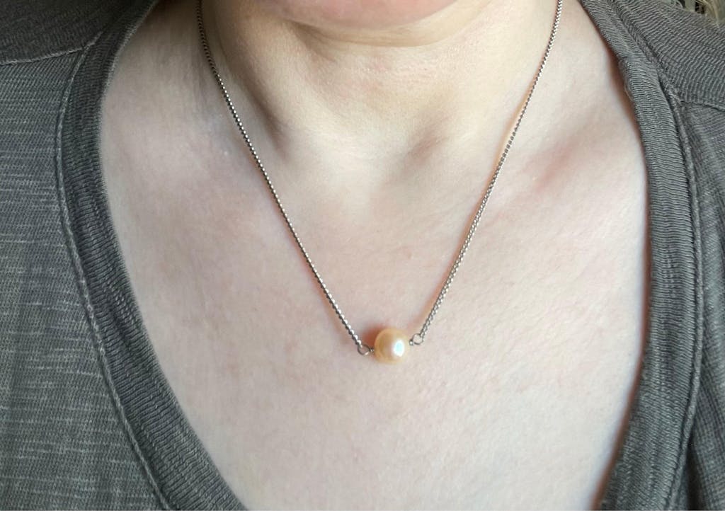 One gorgeous pink freshwater pearl is wire-wrapped with hypoallergenic niobium wire on a titanium curb chain. The titanium curbed chain has a width of 1.8 mm and closes with a titanium lobster clasp. This necklace is completely made from Niobium and Titanium, which are both nickel-free and especially designed for supersensitive skin.