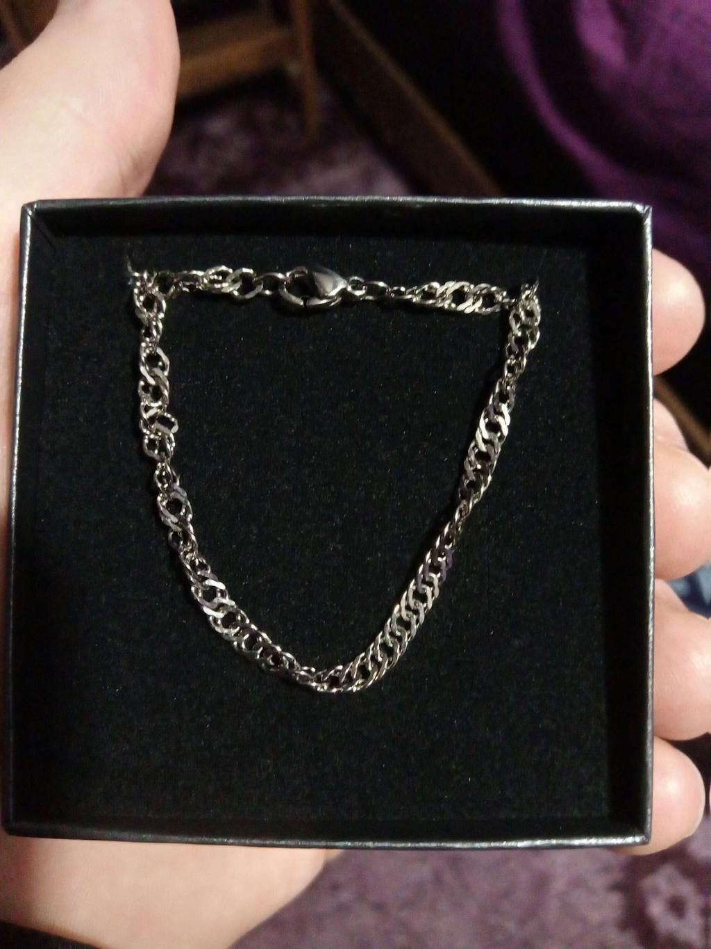Beautiful pure titanium Singapore chain necklace. The links of this necklace are twisted, giving the necklace an elegant look, while it is an extremely strong chain, as all the links are welded. The Necklace closes with a Titanium Lobster Clasp. The clasp hooks into an oval Titanium link.