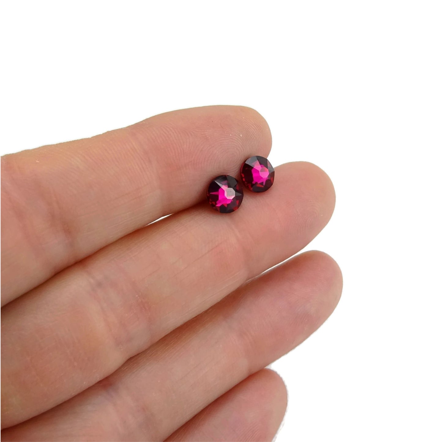 These ruby-red titanium stud earrings will make your everyday wear look a little more dramatic. Skillfully handcrafted, the earrings feature gorgeous ruby red crystal prisms attached to pure titanium posts and backs. Perfect for all-day wear, these hypoallergenic titanium stud earrings are nickel-free, so they won't irritate sensitive ears.