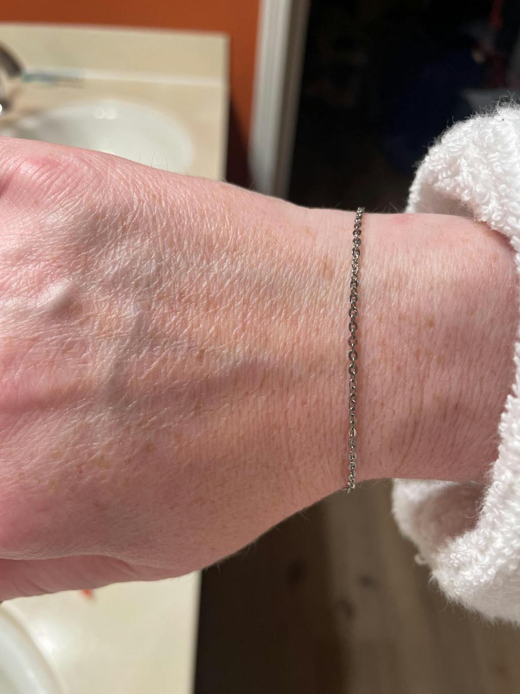 The Shiny Flat Link Cable Titanium Bracelet sparkles with sophistication thanks to its flat links. The bracelet features a 1.8mm delicate cable chain that adds a touch of femininity, but at the same time, it is an extremely strong chain for its size. It is completely made from pure titanium (grade 1), and all links and rings are welded. The bracelet's minimalist yet eye-catching design makes it perfect for daily wear and will add a touch of sparkle to any outfit. This bracelet is especially designed for people with sensitive skin due to nickel allergies, but can be worn by everybody.