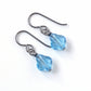 Sparkling aquamarine blue crystals in a baroque shape dangle from your choice of Niobium or Titanium ear wires. The crystals are strung on Niobium headpins, which makes these beauties completely hypoallergenic. Beautiful sparkly earrings that don't irritate your ears.