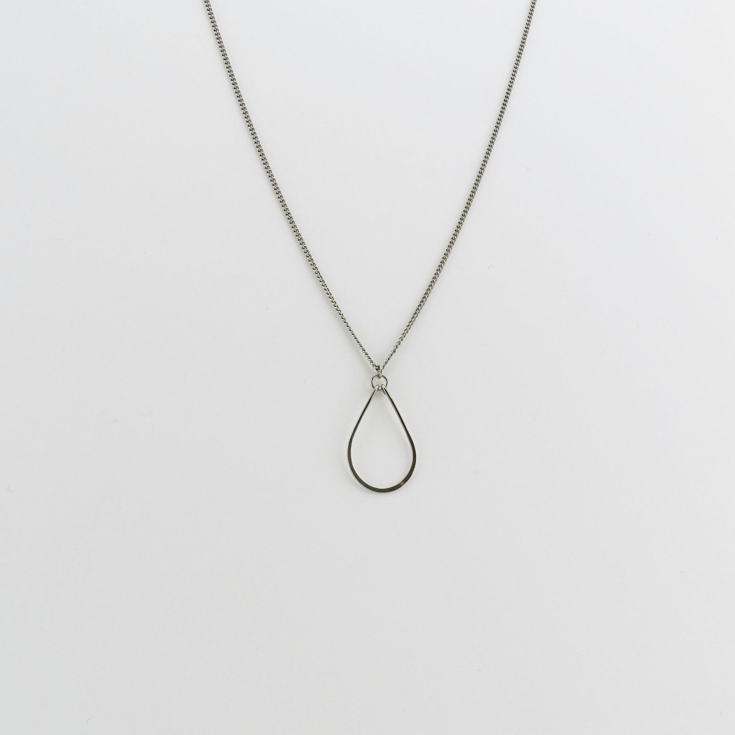 A gorgeous silvery gray niobium teardrop dangles from a Titanium curb chain necklace. The teardrop is hammered to give it extra sparkle. This necklace is completely made with hypoallergenic nickel free metals like titanium and niobium.